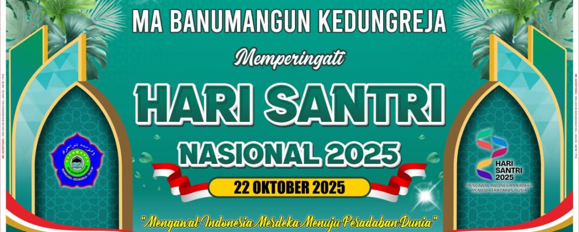 Keluarga besar MA Banumangun Kedungreja mengucapkan Selamat Hari Santri Nasional 2025. Semoga semangat santri — cinta ilmu, taat kepada Allah, dan pengabdian kepada bangsa — senantiasa membara di hati kita semua.